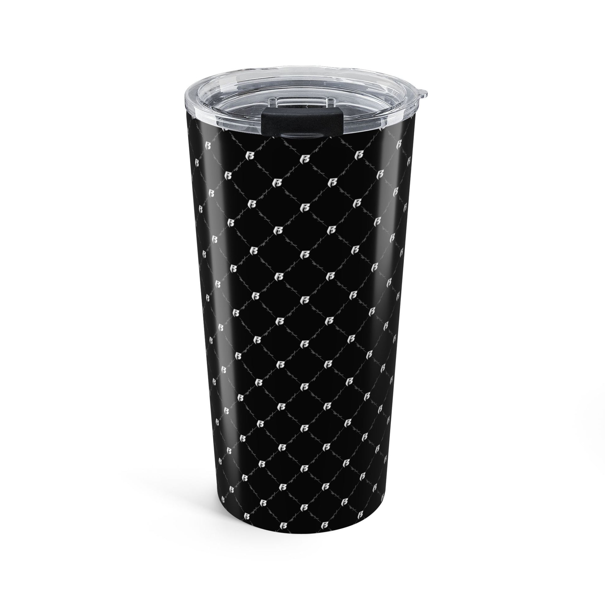 A sleek 20oz stainless steel tumbler wrapped in a glossy, black lattice pattern that catches light and keeps your drink steady through the day. Vacuum insulation holds coffee warm or iced beverages cold while the clear push-on lid with rubber gasket seals securely for commute-rough mornings. The slim, rounded shape slips into cup holders and feels substantial but not bulky in hand. Durable, rust-resistant construction and dishwasher-safe finish mean this tumbler travels, tumbles, and keeps up—whether you’re moving between meetings, road-tripping, or settling in for a long work session.